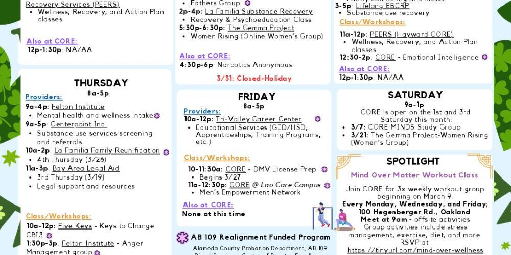 Juev, 3/12 (11a-2p): Foro de Recursos Comunitarios & Orientación sobre recursos para personas en libertad condicional (11a-12p) @ Oakland CORE – 100 Hegenberger Road, Oakland, CA